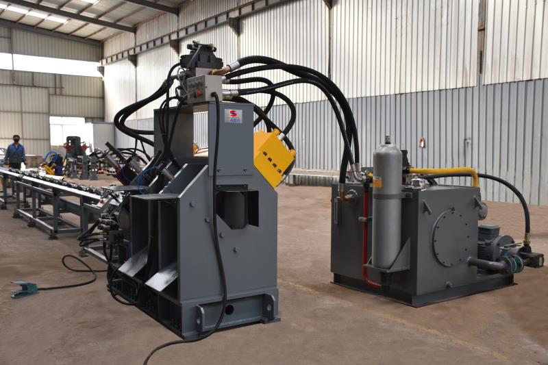 ◆產品(pǐn)結構(gòu)特(tè)征 Product structure characteristics 1、扁鋼(gāng)打字(zì)、衝孔、剪切、壓型於一(yī)體,直接出(chū)電力(lì)抱箍,使用範圍廣,開機效(xiào)率高(gāo)。 2、采用數(shù)控技術,伺服電(diàn)機送進,效率高,精度穩定(dìng)。 3、精準且全麵的操作係統,十分簡單易學。 4、具備自我診斷功能。 5、根據(jù)客戶要求,可實現智能物聯功能 1. Integrating marking punching shearing and pressing of flat steel, making the clamps directly, has a wide range of applications and high working efficiency. 2. dopting CNC technology and servo motor feeding, has high efficiency and stable accuracy 3. Equipping with accurate and comprehensive operating system, easy to operate 4. Equipping with self-diagnosis function 5. Intelligent IOT function can be achieved as customer’s requirements